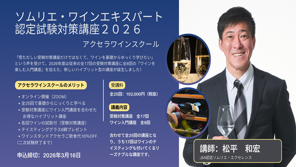 - 【オンライン】JSA認定試験対策講座2026<ソムリエ・ワインエキスパート>再募集のお知らせ
